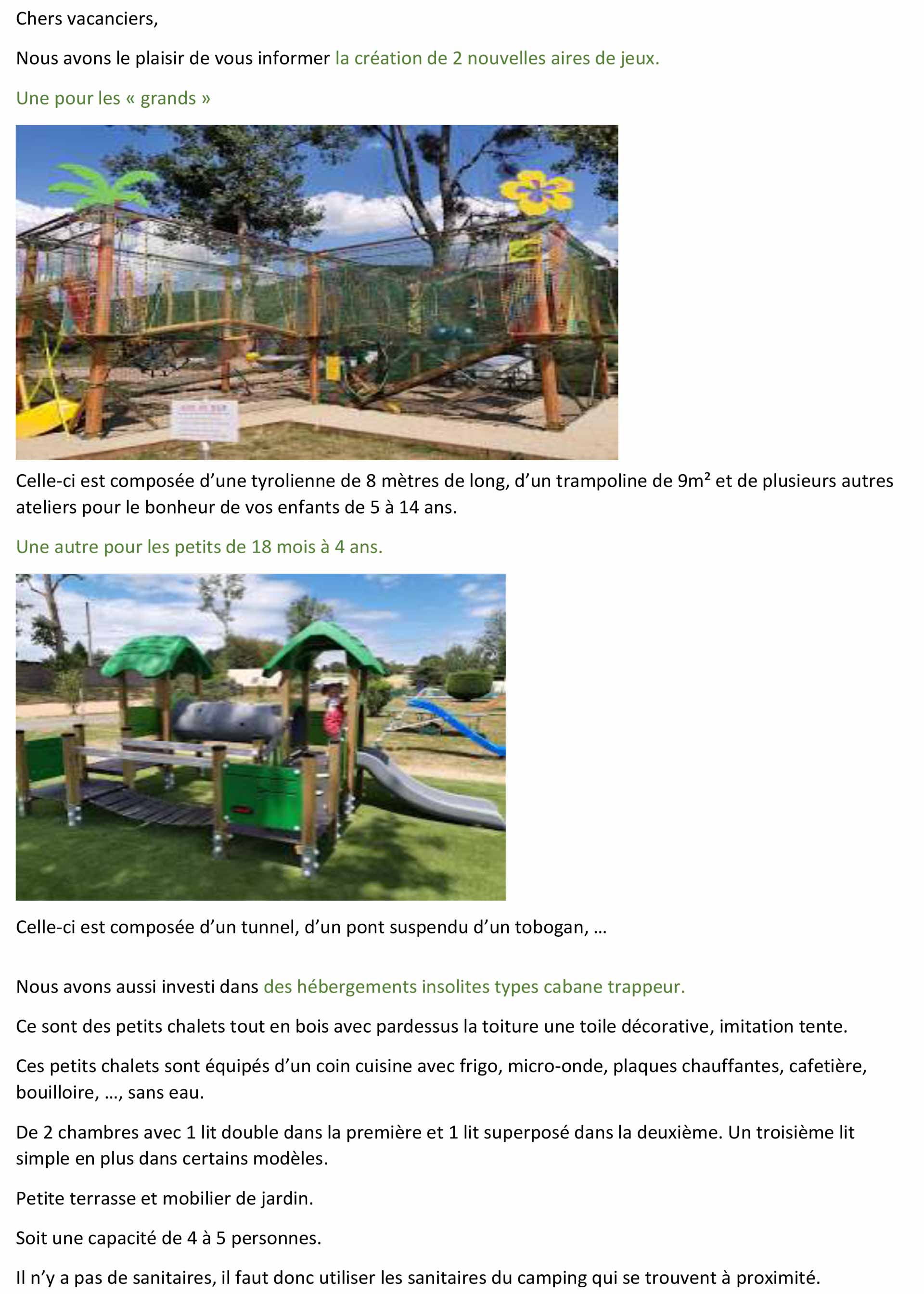 Modernisation du Camping Le Grün de Chignore à Vollore